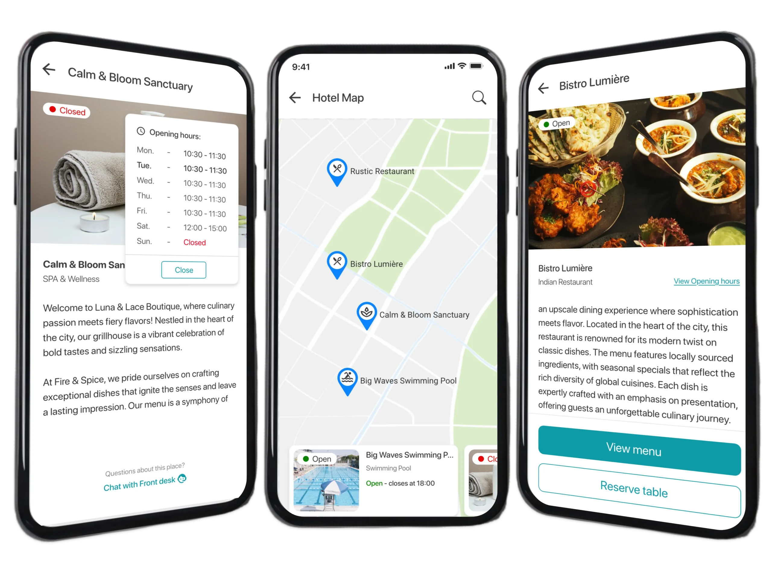 Help guests find their way around your property without confusion. With the Hotel Map inside the SOPAGO Guest App, visitors can explore pools, restaurants, spa, gym, meeting rooms and more on a branded, smartphone friendly map.