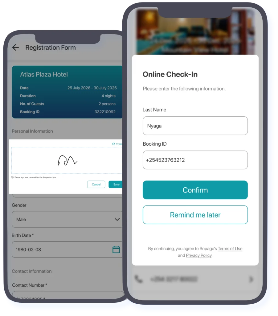 SOPAGO lets guests complete most of the check in steps remotely, before they reach your front desk. They submit details, confirm their booking and may even make a payment in advance. On arrival, the process is shorter and more comfortable, which improves first impressions and overall satisfaction.