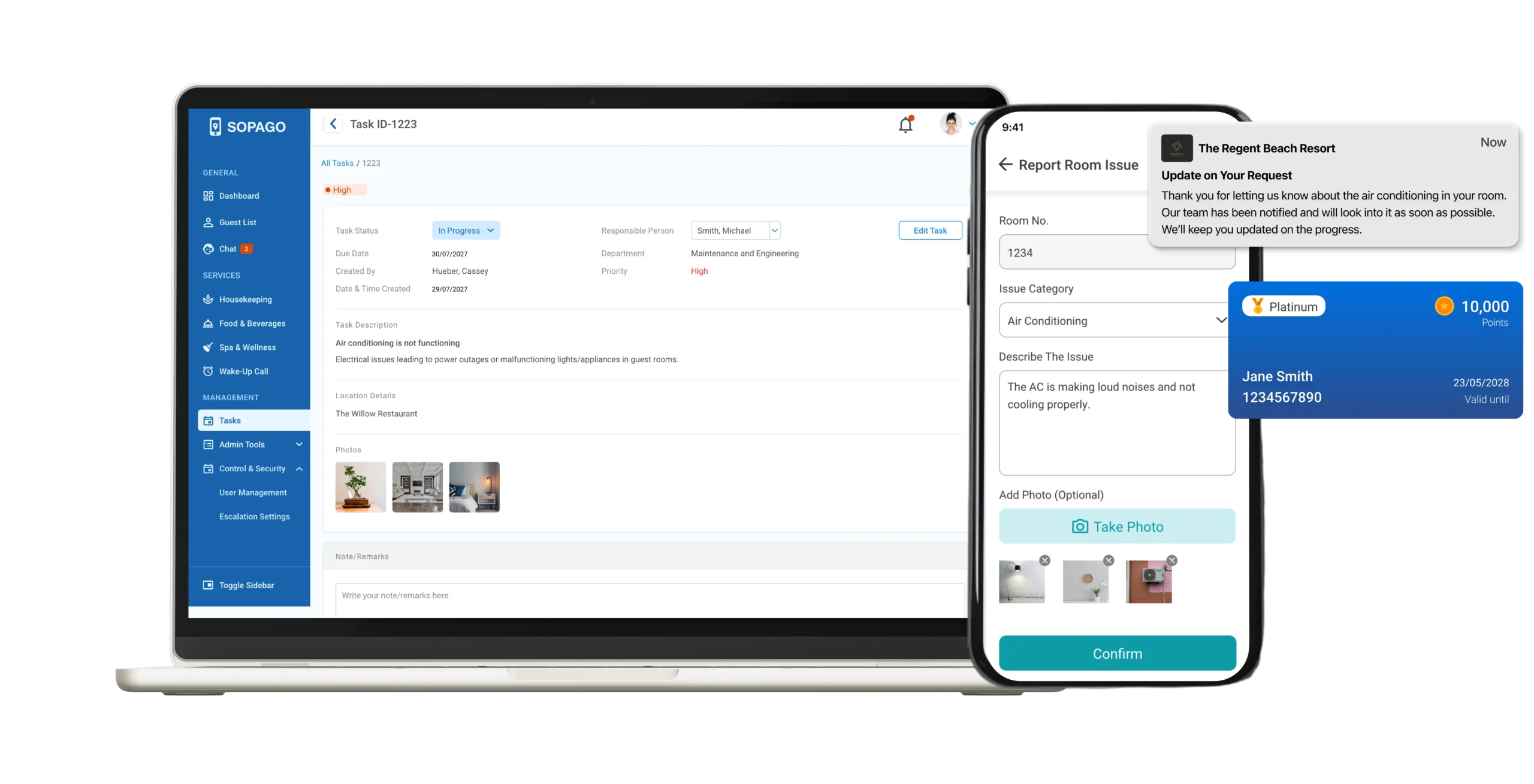 | You can start with surveys alone or connect SOPAGO Guest Experience and Task Management PRO later for closed loop resolution.