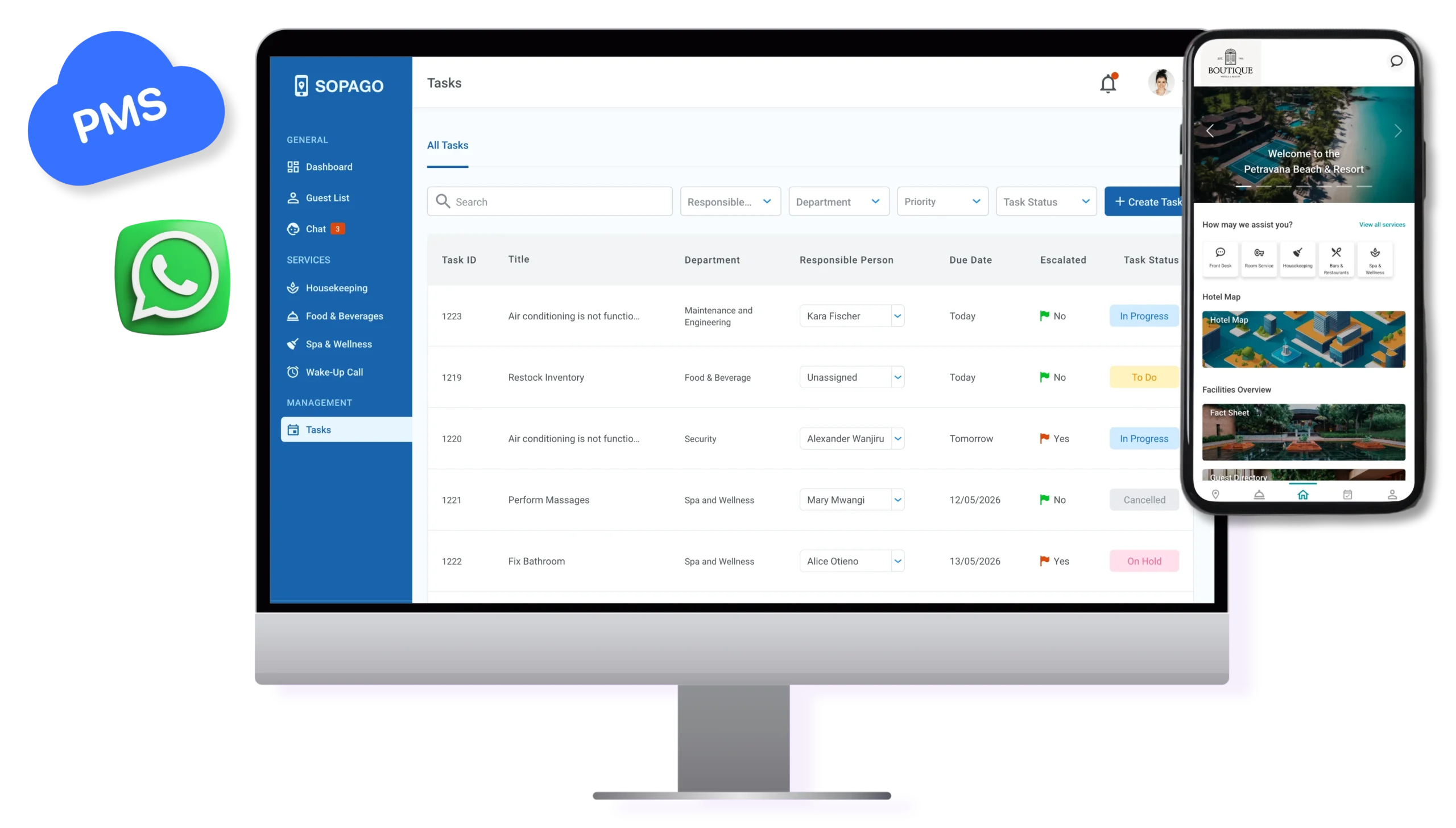 SOPAGO Task Management PRO brings your daily operations into one place, and we manage the setup for you so your team can stay close to guests.